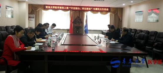 12月9日上午,医学部领导班子“不忘初心、牢记使命”专题民主生活会在附属医院行政楼第二会议室召开。校党委常委、组织部长徐龙飞,校党委主题教育第四指导组组长黄国俊到会指导。会议由医学部党工委书记、部长王新生同志主持。学部领导班子全体成员参加了会议。