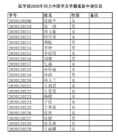 医学部开元网页版公布2020年同力申硕人员重新申请学籍注册信息
